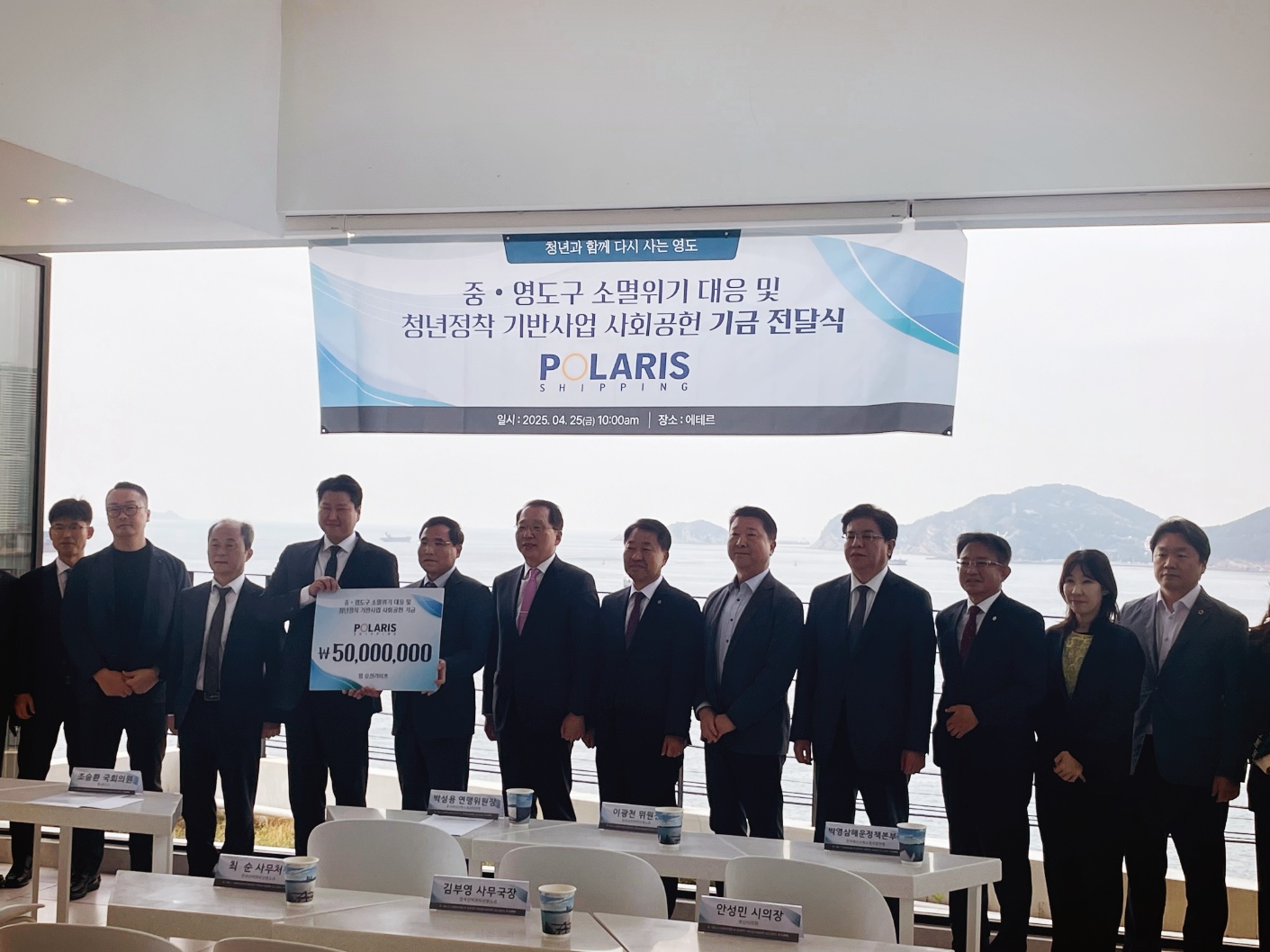 Polaris Shipping held an event on April 25 (Fri) at the Ether Cafe in 234 Jeolyeong-ro, Yeongdo-gu, Busan, to deliver donations to the 'Young Ocean Life (YOL) Association' to support youth settlement infrastructure projects. This donation was designed to support young people's settlement and self-reliance in the region and to expand the sustainable role of the private sector in responding to the crisis of regional extinction.